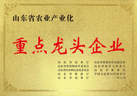 山東省農業(yè)產(chǎn)業(yè)化重點龍頭企業(yè),高新技術企業(yè),“食安山東”生產(chǎn)加工示范企業(yè),山東省農產(chǎn)品加工示范企業(yè),山東省農業(yè)“新六產(chǎn)”示范主體企業(yè),山東省“專精特新”企業(yè),山東省農業(yè)產(chǎn)業(yè)化頭部企業(yè)、青島市文明單位,青島市進出口誠信企業(yè),等榮譽稱號。