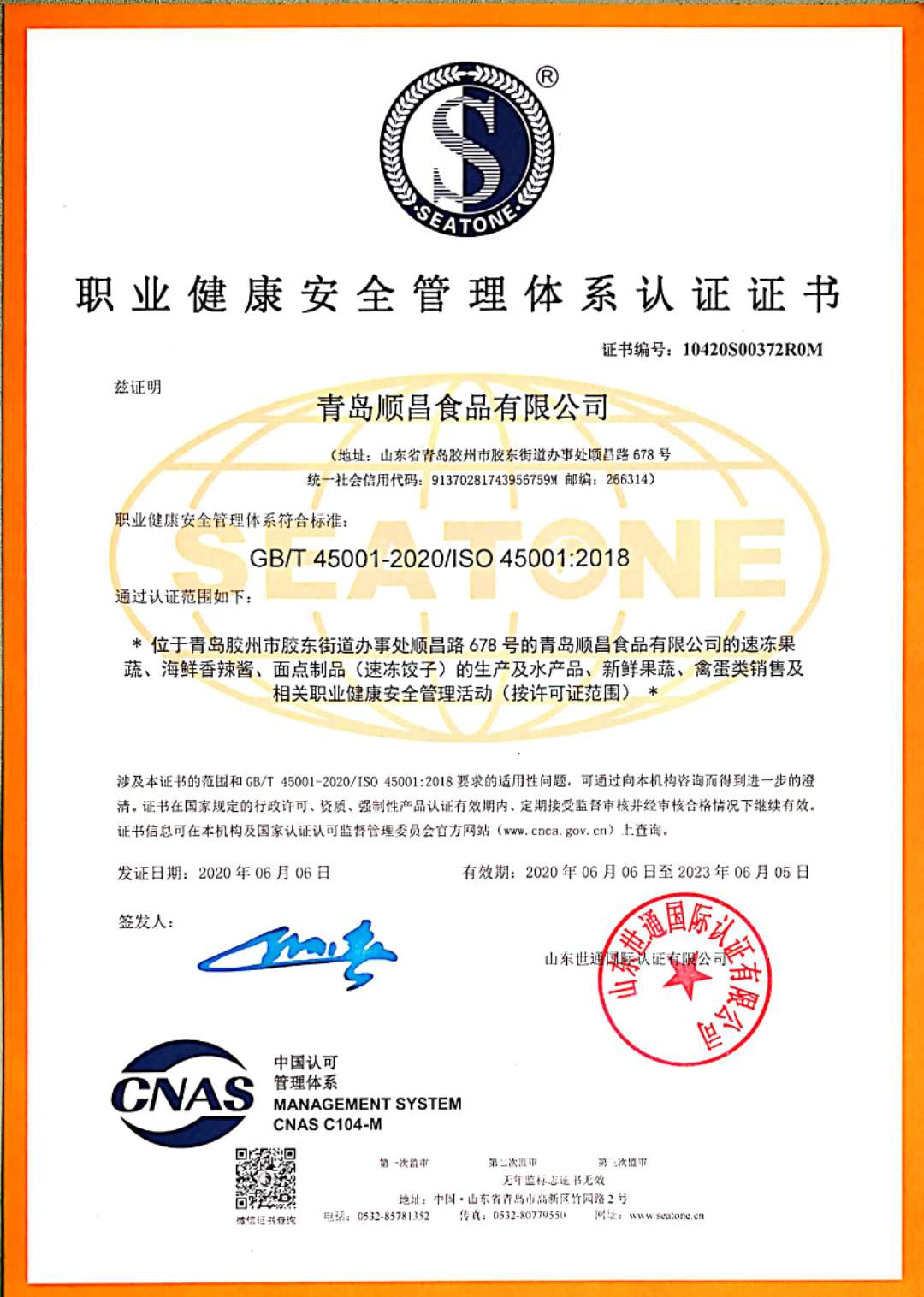 安全管理體系證書